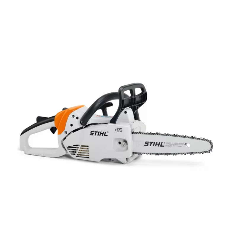 Tronçonneuse très légère pour les utilisateurs occasionnels exigeants, les travaux de jardinage et d’aménagement, les entreprises forestières et d’élagage. Utilisation ergonomique et aisée. Démarrage sans effort grâce à la pompe d’amorçage manuelle et l’allumage Stihl ErgoStart, chaîne tronçonneuse 1/4″-PM3 facile à guider pour une coupe très fine avec de bonnes performances de coupe. Moteur 2-MIX économique et puissant.